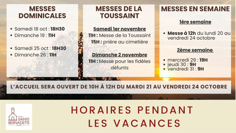 Déroulé des messes du week-end des 25 et 26 octobre.